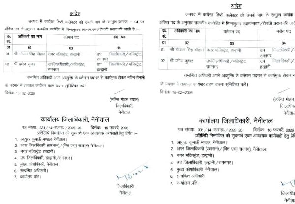 नैनीताल प्रशासन में फेरबदल, तत्काल प्रभाव से लागू हुए आदेश….