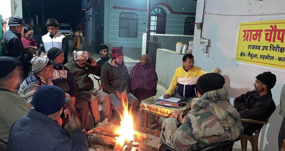कालाढूंगी – सर्द रातों में जब आम लोग घरों में दुबके रहते हैं, तब तहसील कालाढूंगी क्षेत्र में राजस्व उप निरीक्षक तारा चंद्र घिल्डियाल ग्रामीणों को त्वरित न्याय दिलाने के लिए अलाव के बीच चौपाल लगाकर मिसाल पेश कर रहे हैं। जिलाधिकारी नैनीताल ललित मोहन रयाल के आदेश और उपजिलाधिकारी कालाढूंगी विपिन चंद्र पंत के निर्देशों के क्रम में निर्विवाद उत्तराधिकार के मामलों का निस्तारण अब तेजी से गांव-गांव पहुंच रहा है।