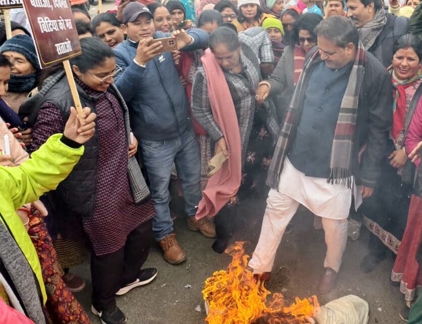 रुद्रपुर – अंकिता भंडारी प्रकरण को लेकर कांग्रेस द्वारा कथित रूप से भ्रम फैलाने और राजनीतिक नैरेटिव गढ़ने के विरोध में मंगलवार को भारतीय जनता पार्टी महिला मोर्चा ने शहर में जोरदार प्रदर्शन किया। बड़ी संख्या में महिला कार्यकर्ताओं ने सड़कों पर उतरकर आक्रोश रैली निकाली और गल्ला मंडी में कांग्रेस का पुतला दहन कर विरोध दर्ज कराया।