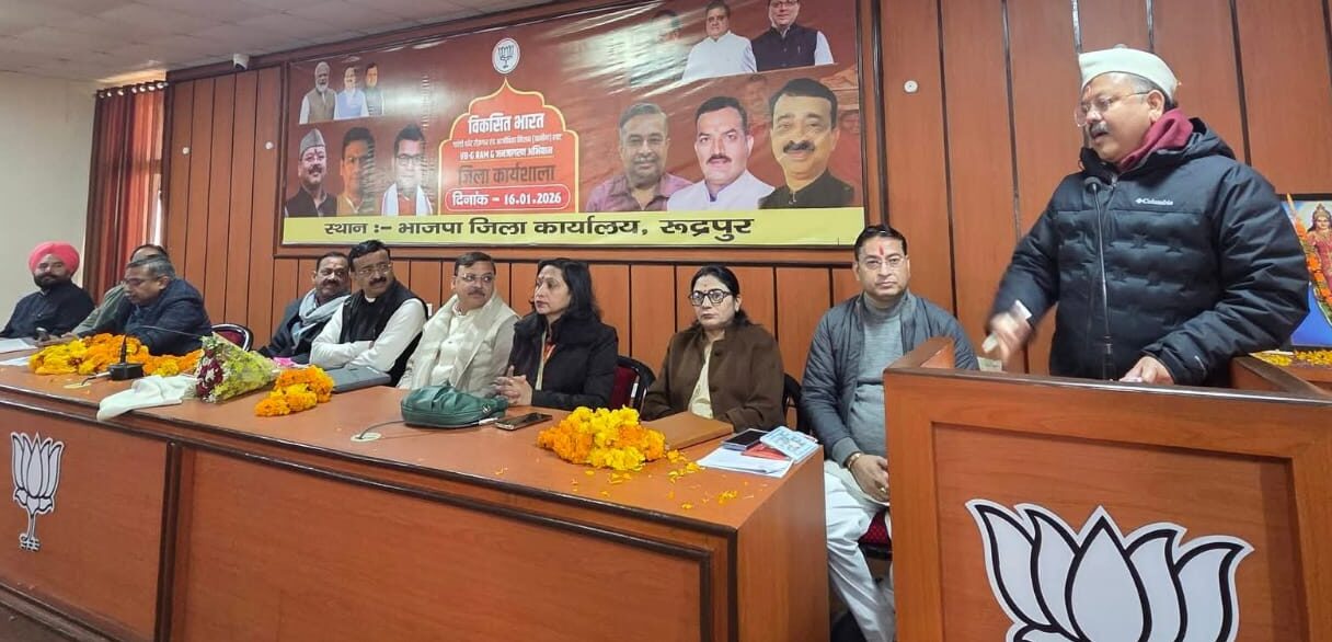 रुद्रपुर – भारतीय जनता पार्टी द्वारा चलाए जा रहे देशव्यापी जनजागरण अभियान ‘विकसित भारत गारंटी फॉर रोजगार मिशन (ग्रामीण)’ के तहत रुद्रपुर जिला भाजपा कार्यालय में एक वृहद जिला स्तरीय कार्यशाला का आयोजन किया गया। कार्यशाला का उद्देश्य ग्रामीण क्षेत्रों में रोजगार के नए अवसर सृजित करना और केंद्र व राज्य सरकार की जनकल्याणकारी योजनाओं को अंतिम पंक्ति में खड़े व्यक्ति तक पहुंचाना रहा।