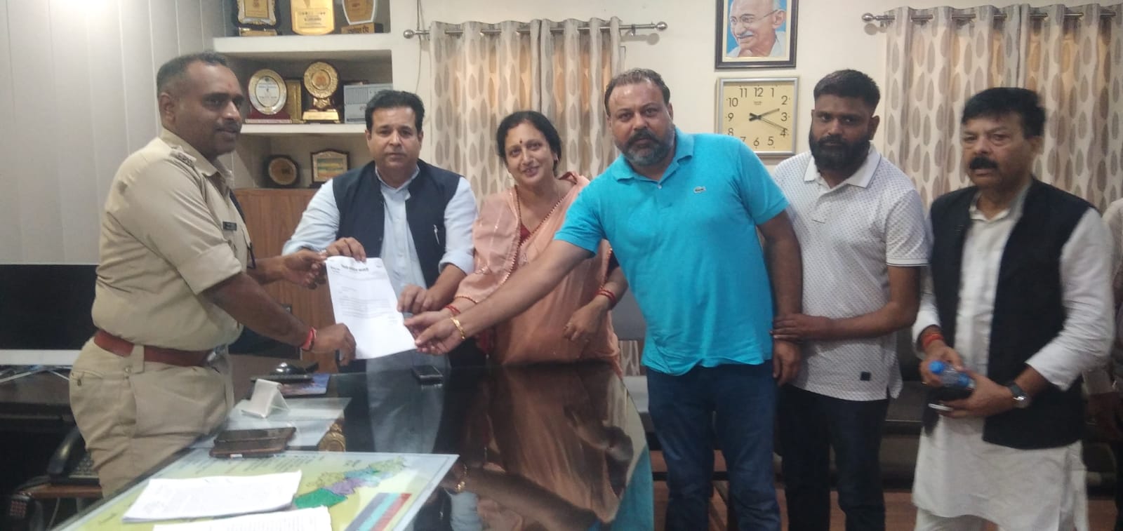 पूर्व पालिका अध्यक्ष श्रीमती मीना शर्मा, सहित पूर्व जिला पंचायत उपाध्यक्ष संदीप चीमा,कांग्रेस नेता अनिल शर्मा,नंद किशोर गंगवार आदि एस एस पी कार्यालय पहुंचे, जहां उन्होंने वरिष्ठ पुलिस अधीक्षक मंजूनाथ टी सी से मुलाकात की, और उन्हें संबंधित घटना की जानकारी दी, और उन्हें ज्ञापन सौंप कर उचित कार्रवाई किए जाने की मांग की l