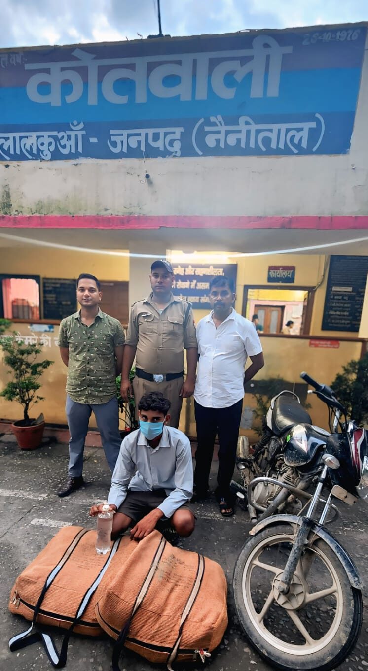 लालकुआं – प्रहलाद नारायण मीणा, वरिष्ठ पुलिस अधीक्षक जनपद नैनीताल द्वारा “ड्रग्स फ्री देवभूमि मिशन-2025” के अंतर्गत युवाओं को नशा मुक्त बनाने के उद्देश्य से जनपद में नशे के विरुद्ध चलाए जा रहे अभियान के अंतर्गत सभी थाना प्रभारी को कड़ी कार्यवाही के निर्देश दिए गए हैं। इसी क्रम में प्रकाश चंद्र एसपी सिटी हल्द्वानी के दिशा निर्देशन, दीपशिखा अग्रवाल क्षेत्राधिकारी लालकुआं के पर्यवेक्षण में दिनेश फर्त्याल प्रभारी निरीक्षक लालकुआं के कुशल नेतृत्व में अलग-अलग स्थानो पर पुलिस टीम गठित की गयी तथा थाना लालकुआं पुलिस द्वारा लालकुआं क्षेत्र में अवैध शराब के विरुद्ध चलाये अभियान के तहत आज दिनाकं मे दौराने गस्त मोबाइल तथा संदिग्ध व्यक्ति वाहन चेकिंग के दौरान पुलिस टीम द्वारा थाना क्षेत्र के विभिन्न स्थानो से क्रमशः अभियुक्तगंणो नं0 01- गुरुदेव सिंह पुत्र कुलवन्त सिंह निवासी नजीमाबाद ढौराडाम थाना किच्छा जिला उ0सिं0नगर उम्र- 20 वर्ष को इमलीघाट सीमेन्ट के पिलर गौलानदी के पास से 218 पाउच कच्ची शराब को मो0सा0 प्लेटिना में अवैध रुप से परिवहन करते हुये तथा , 02- मनोज सिंह थापा पुत्र कैलाश सिंह थापा निवासी बेरीपड़ाव गौला गेट झोपड़पट्टी हल्दूचौड को बेरीपड़ाव गौला गेट बैरियर के पास से 49 पाउच कच्ची शराब के साथ गिरफ्तार कर अभियुक्तगंणो के विरुद्ध कोतवाली लालकुआं में आबकारी अधिनियम में क्रम संख्या – 145/25, 146/25 धारा आबकारी अधिनियम में अभियोग पंजिकृत किये गय है !