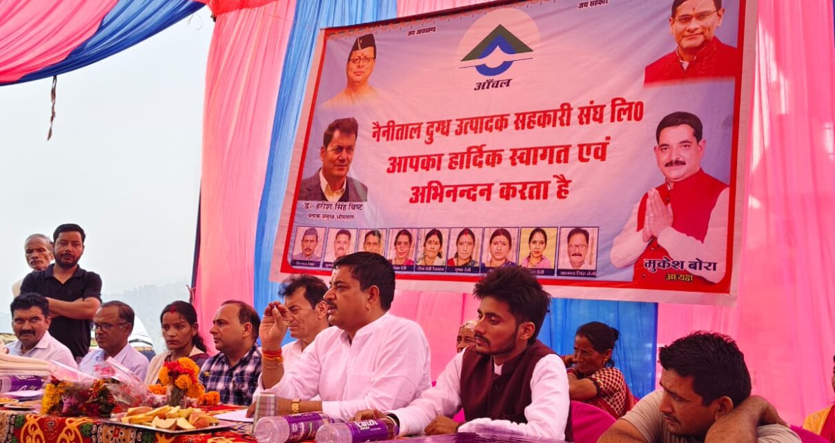लालकुआँ – नैनीताल आँचल दुग्ध उत्पादक सहकारी संघ लिमिटेड के अध्यक्ष मुकेश बोरा की अध्यक्षता में हैडाखान एवं जमरानी दुग्ध उत्पादक क्षेत्र की समितियों के लिए सामूहिक बोनस वितरण समारोह का आयोजन किया गया। कार्यक्रम में ग्रामीण दुग्ध समितियों के अध्यक्षों, सचिवों एवं प्रतिनिधियों ने उत्साहपूर्वक भाग लिया।