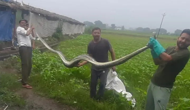 हल्द्वानी-जैव विविधता से भरे वन प्रभाग, हल्द्वानी की नन्धौर रेंज से निकाल कर आबादी की ओर आए एक विशालकाय अजगर सांप को नन्धौर रेंज के कर्मचारियों ने पकड़ा जब उसकी जांच पड़ताल की गई तो दुर्लभ प्रजाति का यह 16 फीट का अजगर को वन विभाग की रेस्क्यू टीम ने सुरक्षित उसके वास स्थल पर छोड़ दिया।