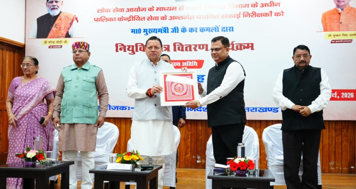 देहरादून – मुख्यमंत्री Pushkar Singh Dhami ने सोमवार को मुख्यमंत्री कैम्प कार्यालय स्थित मुख्य सेवक सदन में शहरी विकास विभाग के अंतर्गत चयनित 63 सफाई निरीक्षकों को नियुक्ति पत्र प्रदान किए। इस अवसर पर मुख्यमंत्री ने लगभग 62 करोड़ रुपये की अनुमानित लागत से बनने वाले शहरी विकास निदेशालय के नवीन भवन का वर्चुअल शिलान्यास भी किया।