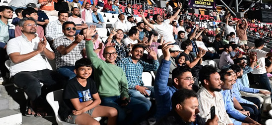 मैच के दौरान स्टेडियम में मौजूद दर्शकों में खासा उत्साह देखने को मिला। क्रिकेट प्रेमियों ने अपने पसंदीदा खिलाड़ियों का जमकर उत्साहवर्धन किया और पूरे मैच के दौरान स्टेडियम में रोमांचक माहौल बना रहा।