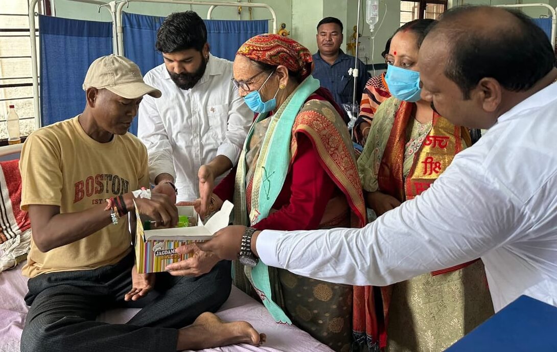 उन्होंने मरीजों से भेंट की, उनका हालचाल जाना और उन्हें फल वितरित कर स्वास्थ्य लाभ की शुभकामनाएँ दीं। बिशना देवी ने कहा कि नरेंद्र मोदी का जीवन सेवा और समर्पण को समर्पित रहा है और इसी प्रेरणा से समाज के कमजोर वर्गों की सहायता करना हम सभी का कर्तव्य है।