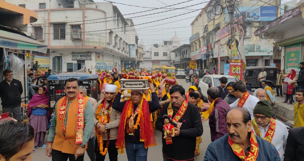 कलश यात्रा का शुभारंभ लक्ष्मी नारायण पांच मंदिर से वैदिक मंत्रोच्चारण के बीच किया गया। पूर्व विधायक राजकुमार ठुकराल स्वयं श्रद्धालुओं के साथ पैदल यात्रा में शामिल हुए और पूरे मार्ग में धार्मिक उत्साह के साथ सनातन संस्कृति के प्रति अपनी गहरी आस्था प्रकट की। मुख्य बाजार के विभिन्न मार्गों से होती हुई यात्रा दुर्गा मंदिर तक पहुंची, जहां जगह-जगह श्रद्धालुओं ने पुष्पवर्षा कर यात्रा का स्वागत किया।