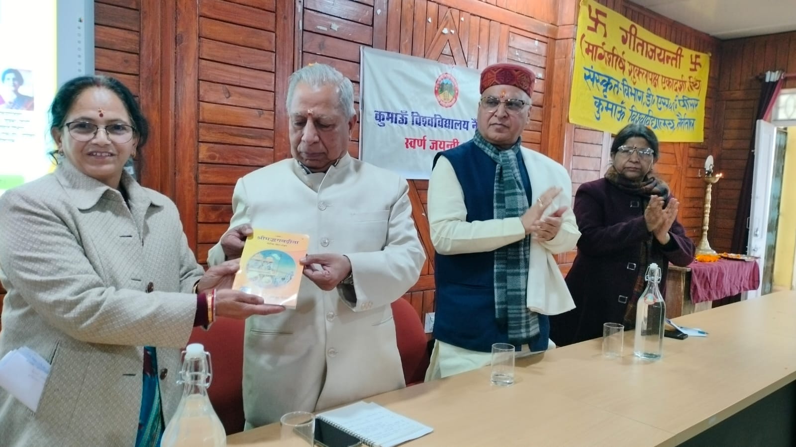 प्रो0 ललित तिवारी, निदेशक, अतिथि प्राध्यापक निदेशालय कुमाऊँ विश्वविद्यालय, नैनीताल, ने संचालन करते हुए भगवद गीता का पूर्ण वर्णन किया उन्होंने कहा की यह 5160 वा वर्ष है गीता जयंती है ।भगवद गीता कर्म ,शरीर के सययोजन की कड़ी है इसके 18अध्याय 7oo श्लोक जीवन का सार प्रस्तुत करते है ।जीवन का दर्शन ही बगवाड़ गीता है जिससे भगवान का गीत भी लहराए है । डॉ0 नीता आर्या, ने सभी का धनबाद किया । तकनीकि संयोजक डॉक्टर लज्जा भट्ट ,डॉ0 प्रदीप कुमार, सहसंयोजका डॉ0 सुषमा जोशी एवं सहयोगी श्रीमती भावना राणा, बी0एस0बी0 बिष्ट, श्रीमती सीमा देवी,