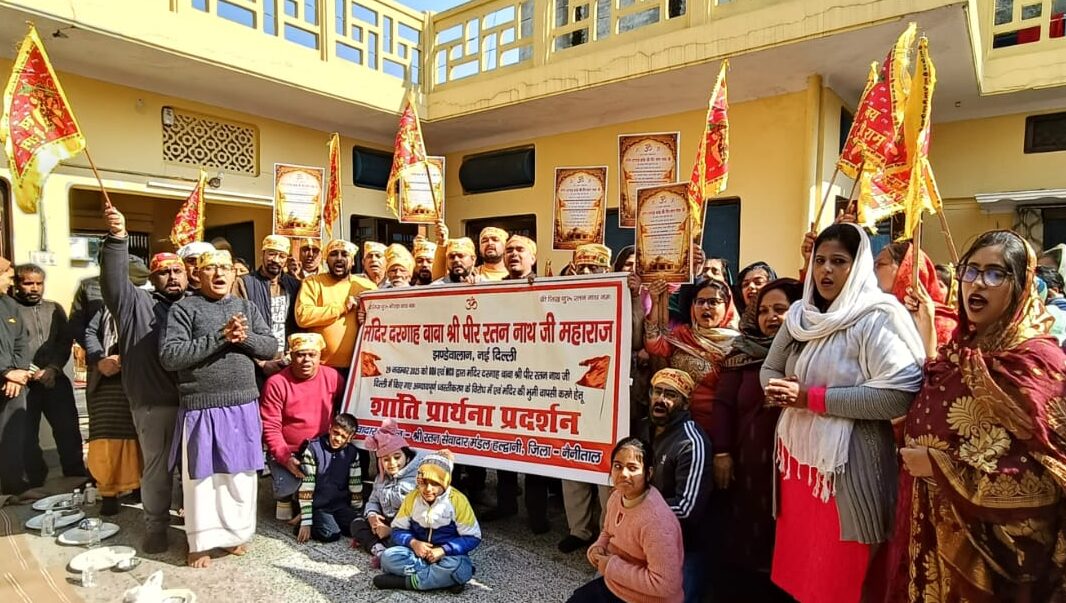 हल्द्वानी – दिल्ली के झंडेवाला क्षेत्र में स्थित प्राचीन मंदिर-दरगाह बाबा श्री पीर रतन नाथ जी महाराज के परिसर में डीडीए और एमसीडी द्वारा की गई बुलडोज़र कार्रवाई के विरोध में हल्द्वानी में जोरदार प्रदर्शन किया गया। श्री रतन सेवादार मंडल, हल्द्वानी के बैनर तले बड़ी संख्या में श्रद्धालु एकत्र हुए और राम नाम जप करते हुए शांतिपूर्ण तरीके से अपना विरोध दर्ज कराया।