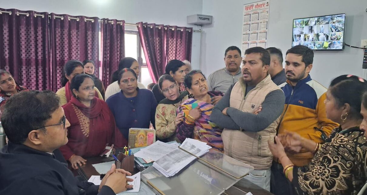 रुद्रपुर – ठंड के मौसम में भीषण पेयजल संकट से जूझ रहे गुप्ता कम्पाउन्ड समेत राजपुरा क्षेत्र के लोगों का सब्र सोमवार को जवाब दे गया। युवा नेता हेमंत साहू के नेतृत्व में स्थानीय नागरिकों ने जलसंस्थान कार्यालय पहुंचकर जोरदार प्रदर्शन किया और विभाग के खिलाफ जमकर नारेबाजी की। इस दौरान बड़ी संख्या में महिलाओं ने भी प्रदर्शन में हिस्सा लिया और अधिकारियों का घेराव कर अपनी नाराजगी खुलकर जाहिर की।