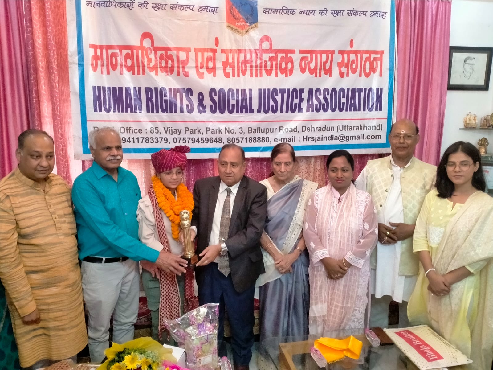 देहरादून- मानवाधिकार एवं सामाजिक न्याय संगठन द्वारा रिद्धि जैन के मोटेसरि हाई स्कूल में आईसीएसई बोर्ड में 98% मार्क्स आने पर एवम मानवधिकार के राष्ट्रीय मुख्य संरक्षक जस्टिस राजेश टंडन जी के सुप्रीम कोर्ट एवम हाई कोर्ट न्यायाधीश की एसोशिएशन् का राष्ट्रीय उपाध्यक्ष बनाए जाने पर 85 विजय पार्क, पार्क नंबर 3 मानवाधिकार के राष्ट्रीय कार्यालय मे स्वागत कार्यक्रम आयोजित किया गया, कार्यक्रम में आए हुए सभी महानुभावों ने अपना आशीर्वाद बच्ची को प्रदान किया,