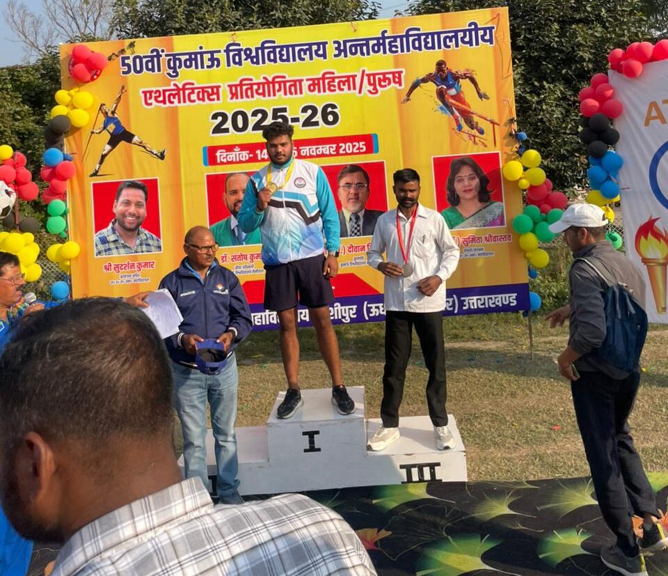 रुद्रपुर – सरदार भगत सिंह राजकीय महाविद्यालय, रुद्रपुर के बीए तृतीय सेमेस्टर के छात्र आर्ष यादव ने कुमाऊँ विश्वविद्यालय द्वारा आयोजित अंतरमहाविद्यालयीय खेल एवं एथलेटिक्स प्रतियोगिता में 7.5 किलोग्राम हैमर थ्रो में प्रथम स्थान प्राप्त कर गोल्ड मेडल जीता है। आर्ष की इस उपलब्धि से महाविद्यालय, शहर और उधम सिंह नगर जिले का नाम गर्व से ऊंचा हुआ है। यह महाविद्यालय के इतिहास में पहली बार है जब किसी छात्र ने हैमर थ्रो में स्वर्ण पदक हासिल किया है।