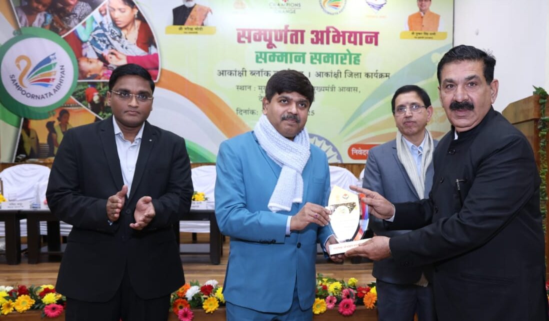 रुद्रपुर – उत्तराखण्ड सरकार के नियोजन विभाग द्वारा संचालित आकांक्षी जनपद/विकासखण्ड कार्यक्रम के अंतर्गत उत्कृष्ट प्रदर्शन करने वाले जनपदों एवं विभागों को सम्मानित करने के लिए राज्य स्तरीय ‘सम्पूर्णता अभियान सम्मान समारोह’ का आयोजन विगत शुक्रवार को मुख्य सेवक सदन, मुख्यमंत्री कैम्प कार्यालय, देहरादून में किया गया। यह सम्मान जुलाई 2024 से सितंबर 2024 की अवधि में निर्धारित छह प्रमुख संकेतांकों पर उत्कृष्ट प्रदर्शन के आधार पर प्रदान किया गया।