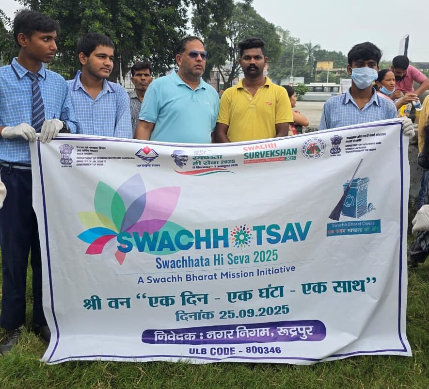 रुद्रपुर – प्रधानमंत्री नरेन्द्र मोदी के जन्मदिवस पर मनाए जा रहे सेवा पखवाड़ा के तहत नगर निगम रुद्रपुर द्वारा गांधी पार्क परिसर में वृहद स्वच्छता अभियान का आयोजन किया गया। इस अभियान में महापौर विकास शर्मा और नगर आयुक्त नरेश दुर्गापाल के नेतृत्व में नगर निगम कर्मचारियों, स्कूली बच्चों और सामाजिक संगठनों से जुड़े सैकड़ों लोगों ने बढ़-चढ़कर हिस्सा लिया।