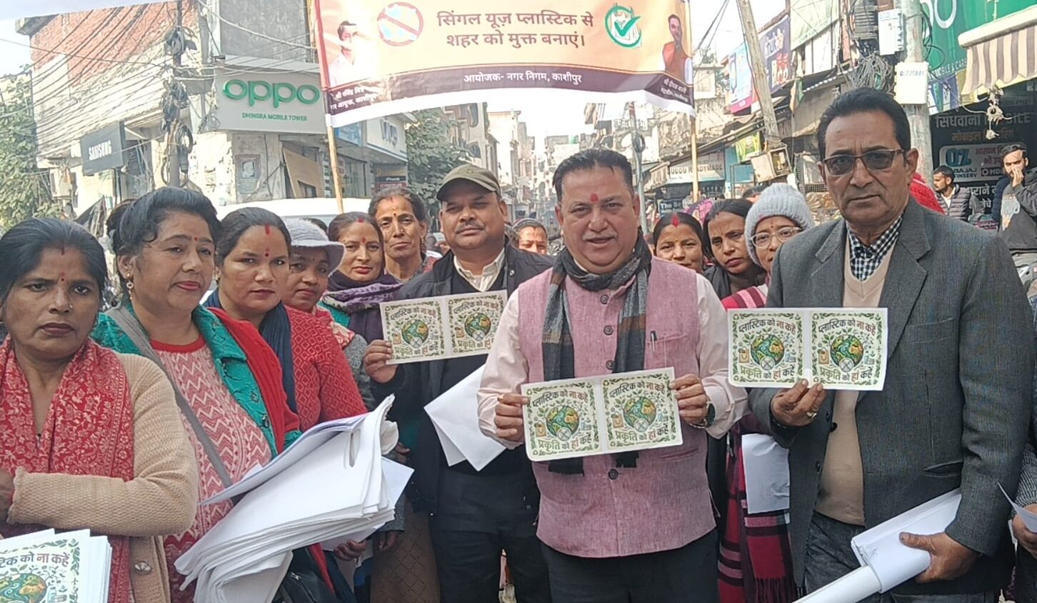 काशीपुर – नगर निगम काशीपुर द्वारा सिंगल यूज़ प्लास्टिक के दुष्प्रभावों से आमजन को जागरूक करने और पर्यावरण संरक्षण को बढ़ावा देने के उद्देश्य से “झोला उठाओ, प्लास्टिक घटाओ” अभियान के तहत मुख्य बाजार एवं पुरानी सब्जी मंडी क्षेत्र में जन-जागरूकता रैली का आयोजन किया गया। रैली का नेतृत्व महापौर दीपक बाली ने किया। इस दौरान उन्होंने नागरिकों से अपील की कि दैनिक जीवन में सिंगल यूज़ प्लास्टिक का प्रयोग बंद कर कपड़े या जूट के झोलों को अपनाएं, जिससे काशीपुर को स्वच्छ, सुंदर और प्लास्टिक मुक्त बनाया जा सके।