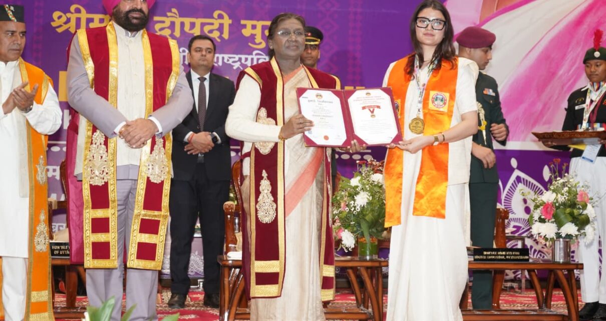 नैनीताल – कुमाऊं विश्वविद्यालय, नैनीताल में आयोजित 20वें दीक्षांत समारोह में राष्ट्रपति द्रौपदी मुर्मु मुख्य अतिथि के रूप में शामिल हुईं। समारोह में राष्ट्रपति ने उत्कृष्ट प्रदर्शन करने वाले विद्यार्थियों को गोल्ड मेडल और उपाधियां प्रदान कीं। इस अवसर पर राज्यपाल लेफ्टिनेंट जनरल गुरमीत सिंह (से नि) और उच्च शिक्षा मंत्री धन सिंह रावत भी उपस्थित रहे।