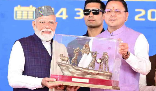 देहरादून – उत्तराखंड की समृद्ध सांस्कृतिक विरासत की झलक उस समय देखने को मिली, जब नरेंद्र मोदी को ‘लाटी’ कला से तैयार विशेष स्मृति चिह्न भेंट किया गया। मुख्यमंत्री पुष्कर सिंह धामी ने मंच पर प्रधानमंत्री का स्वागत करते हुए यह अनोखा उपहार प्रदान किया, जो प्रसिद्ध नंदा देवी राजजात यात्रा से प्रेरित है।
